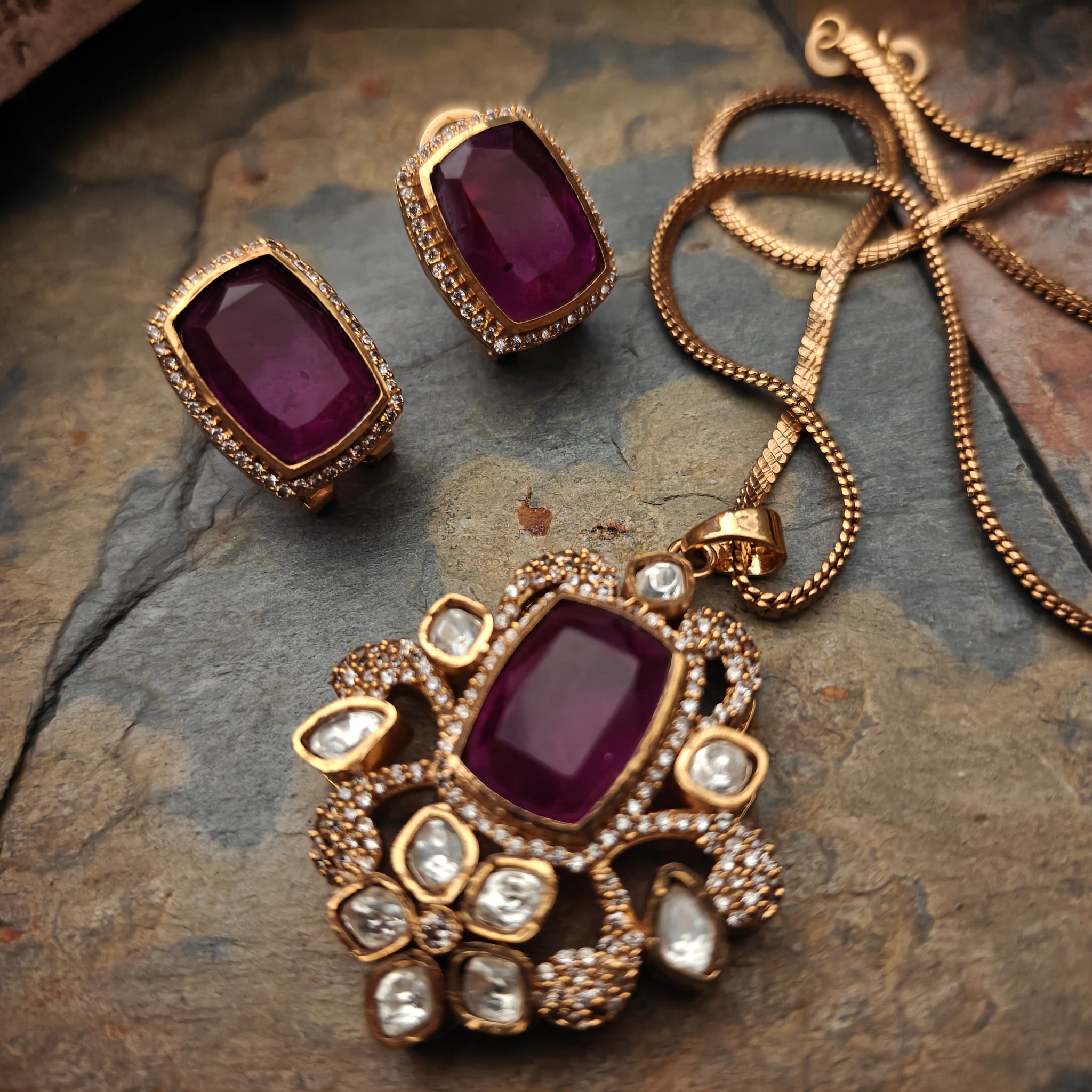 DESIGNER KUNDAN NECKLACE WITH EARRINGS