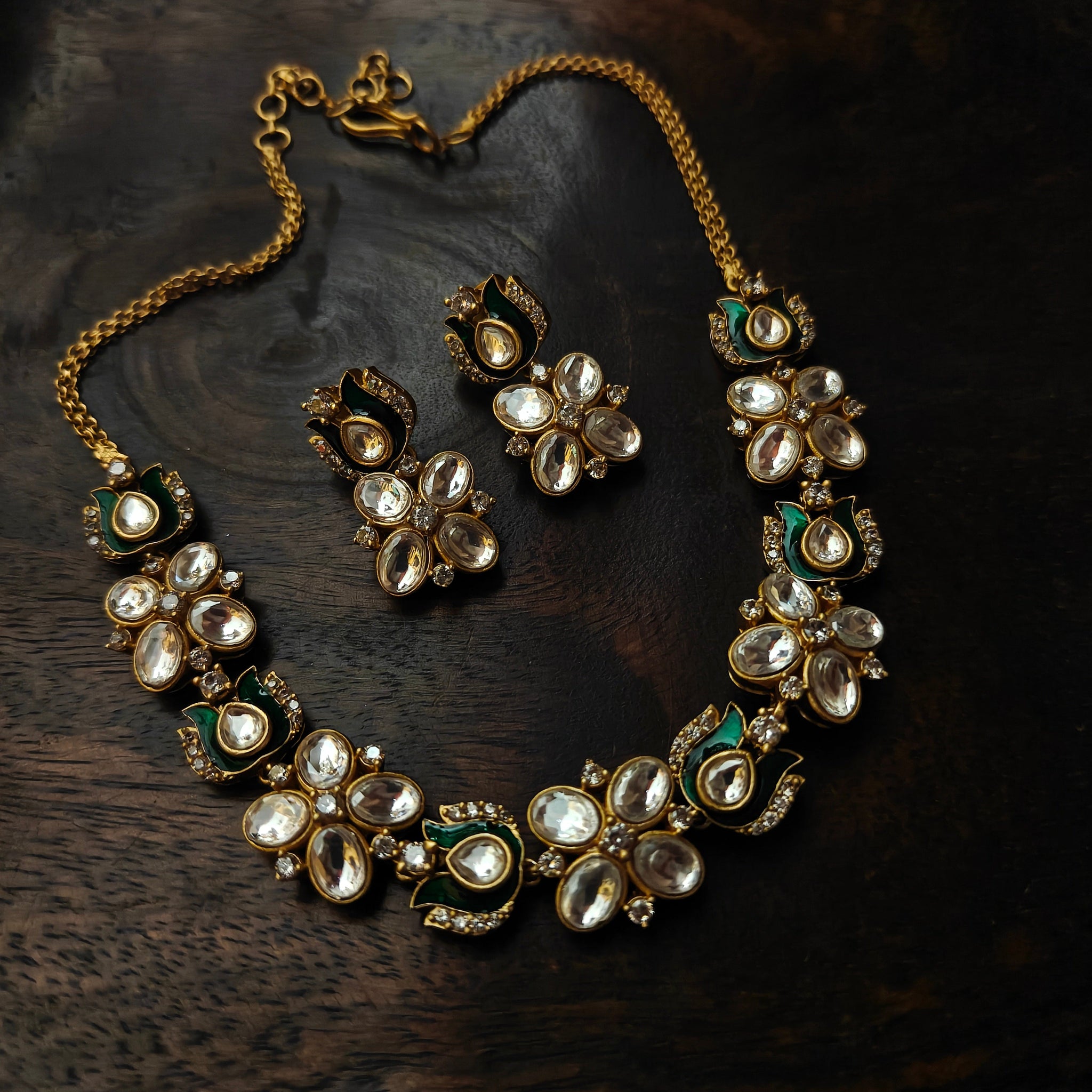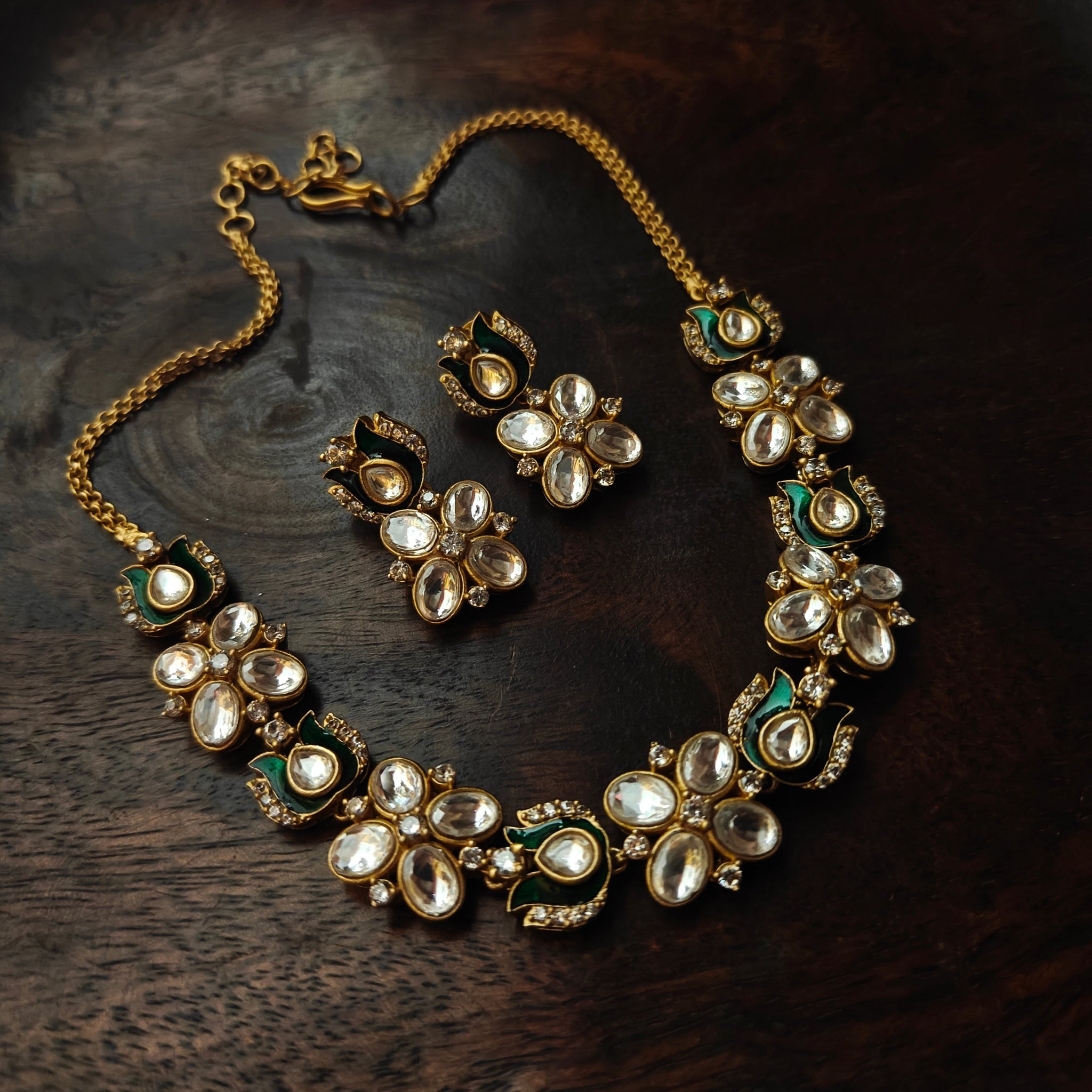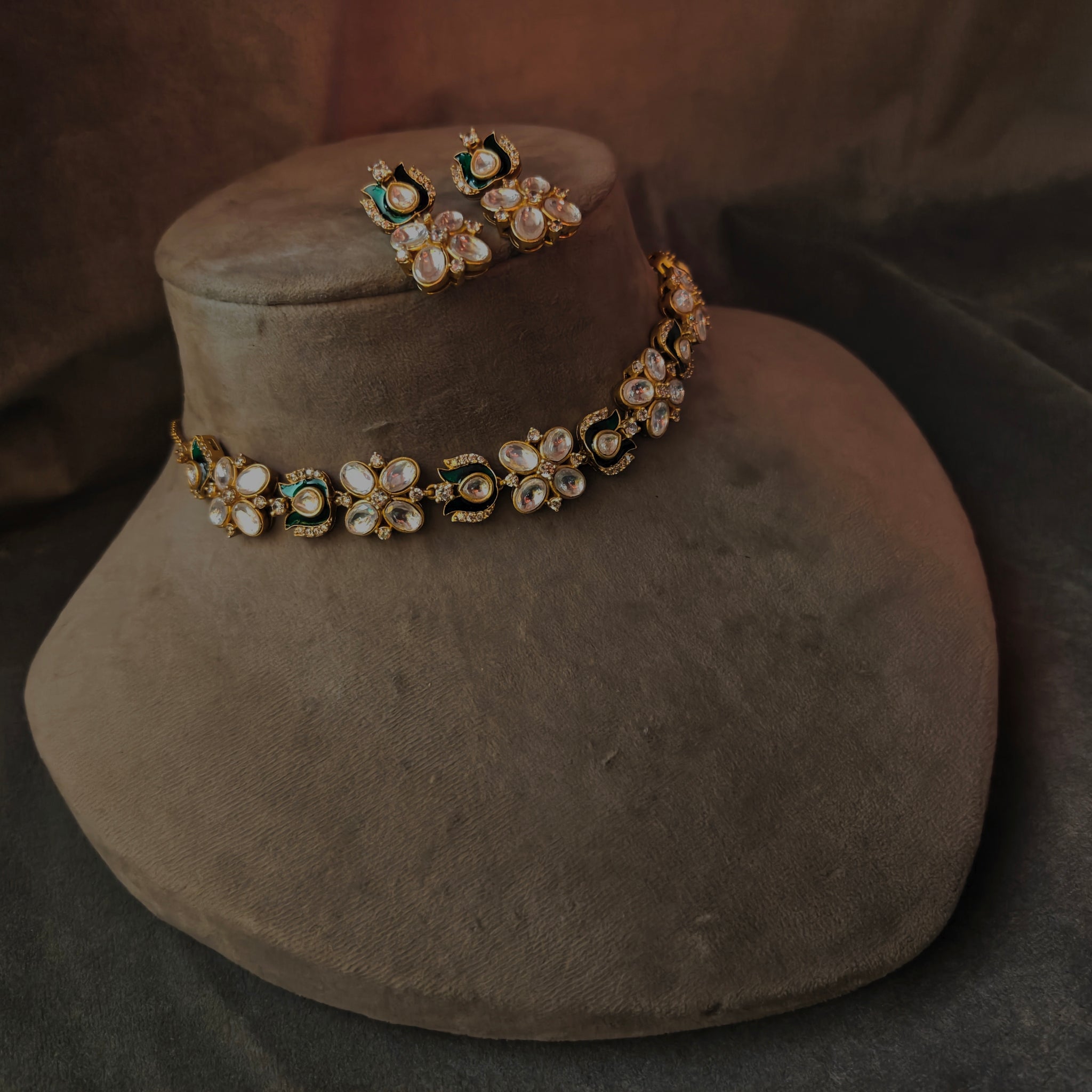 POLKI KUNDAN FLOWER DESIGN CHOKER WITH EARRINGS