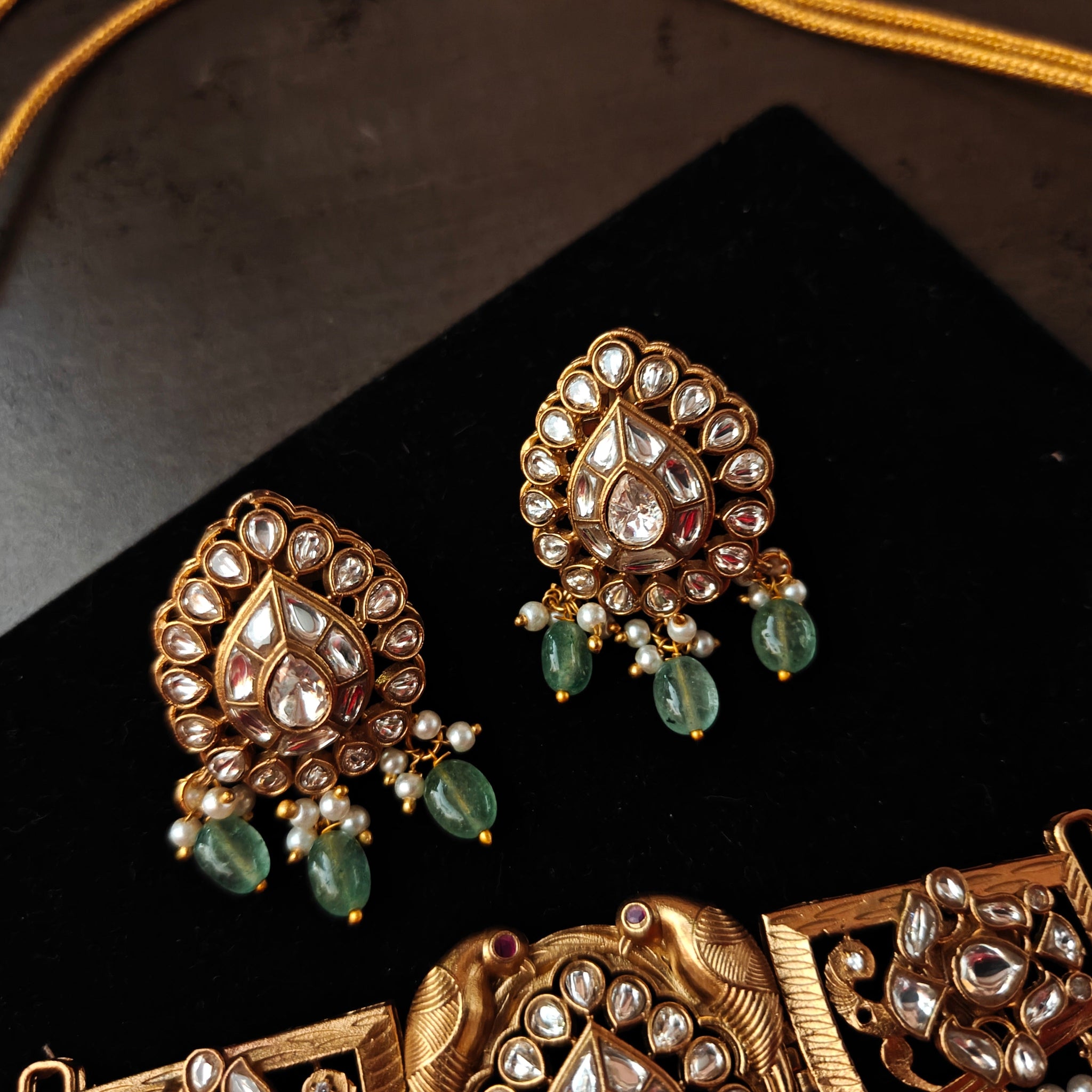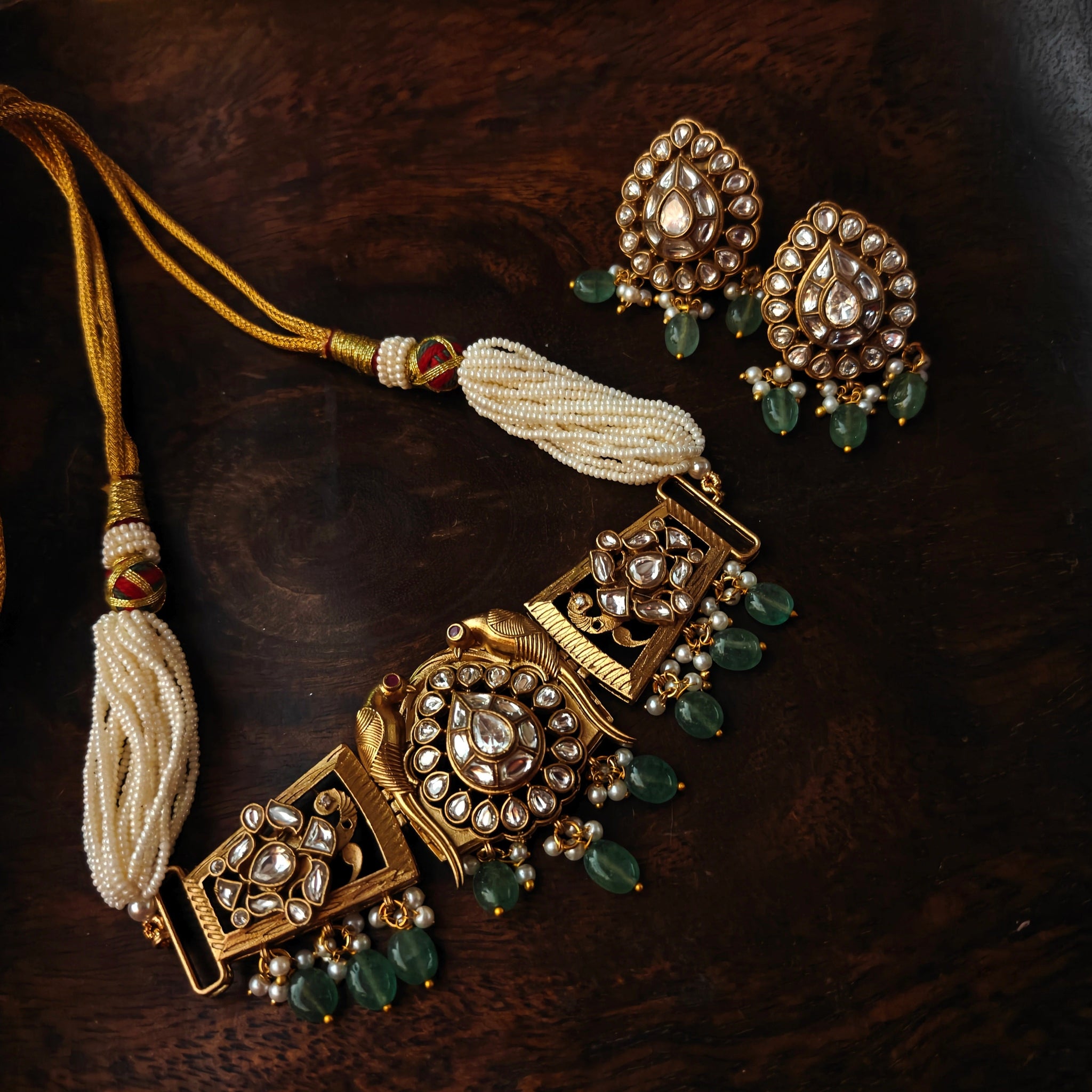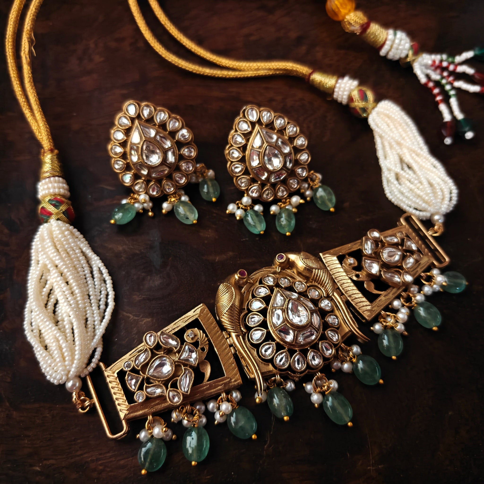 EXQUISITE POLKI KUNDAN AND FLUORITE STONE CHOKER WITH EARRINGS