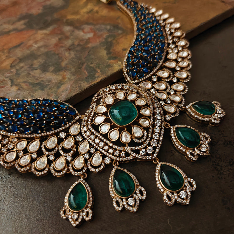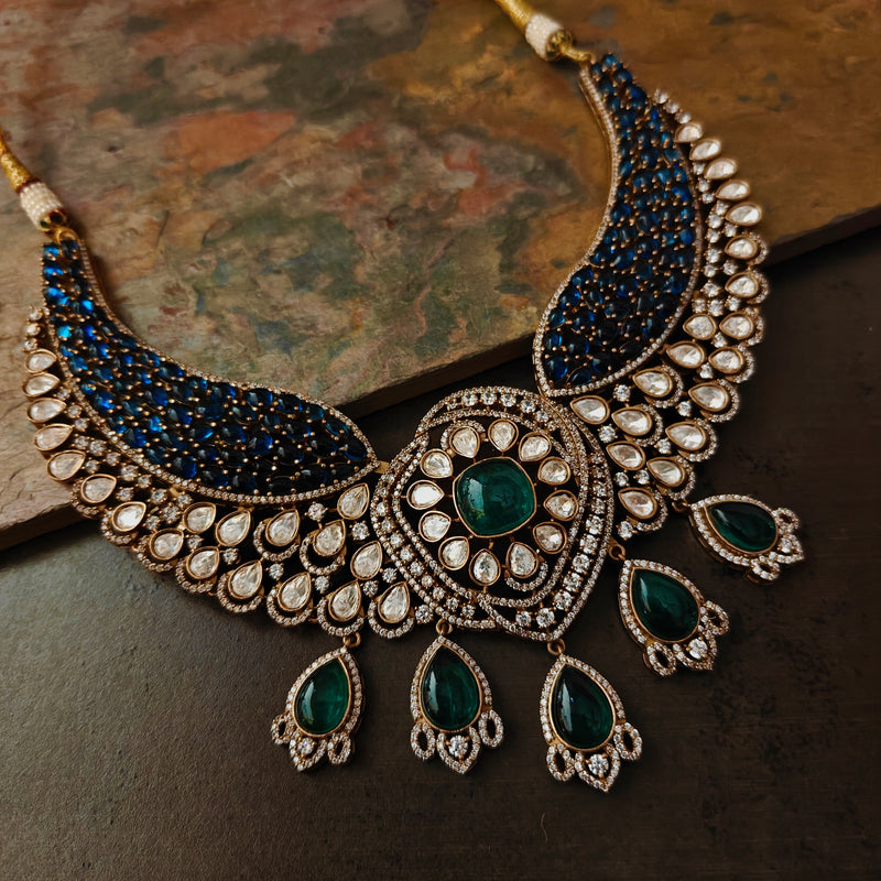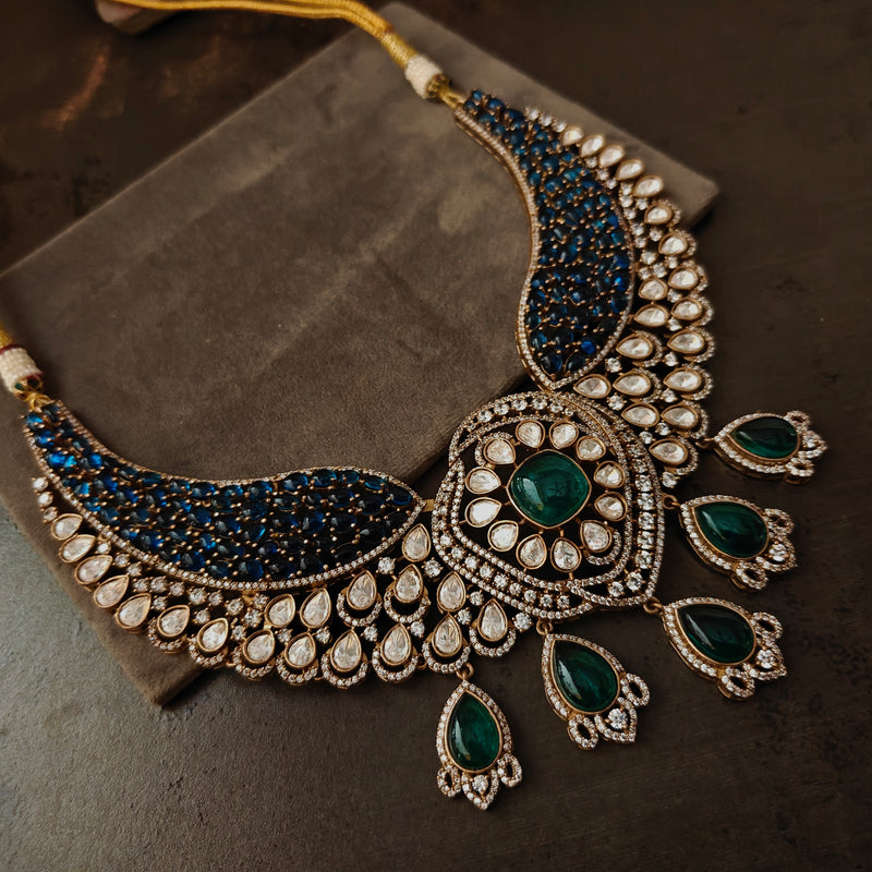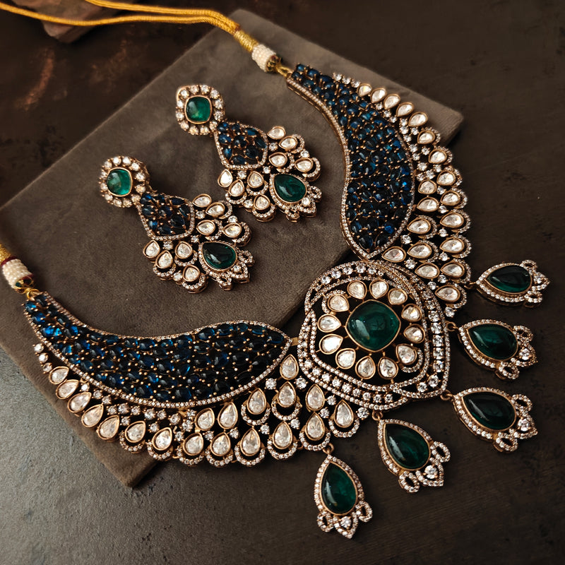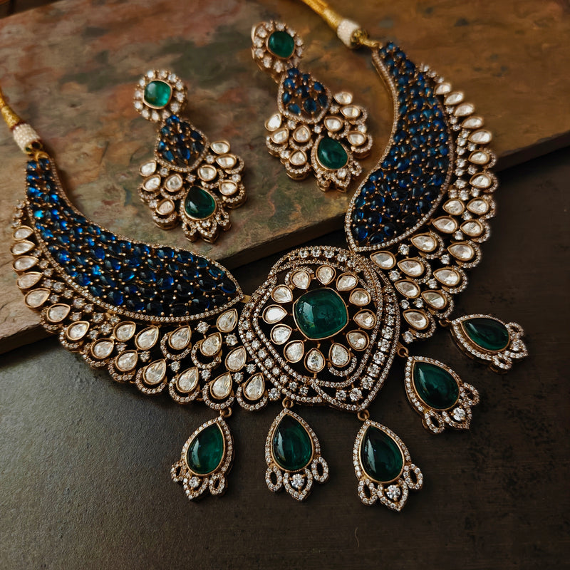 EXQUISITE POLKI KUNDAN DOUBLET STONE CHOKER WITH EARRINGS