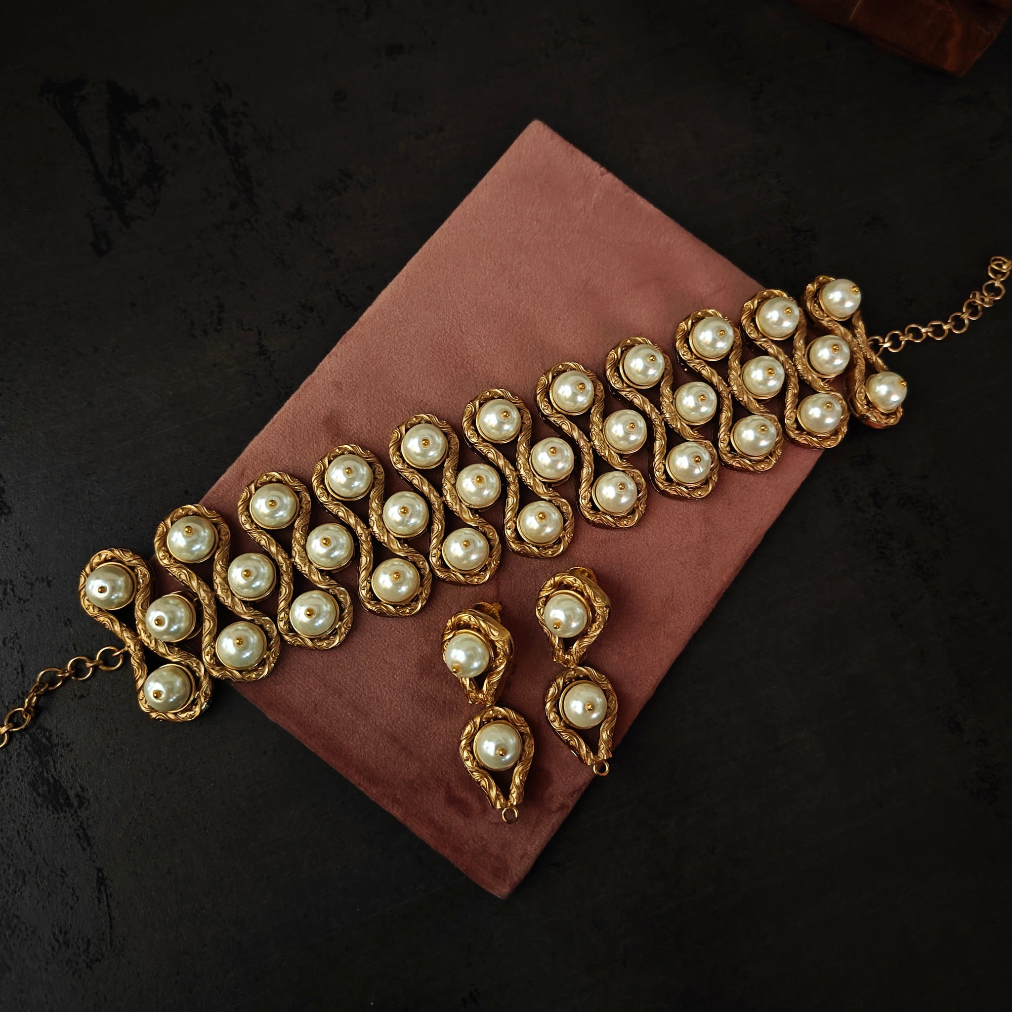 DESIGNER PEARL CHOKER WITH EARRINGS