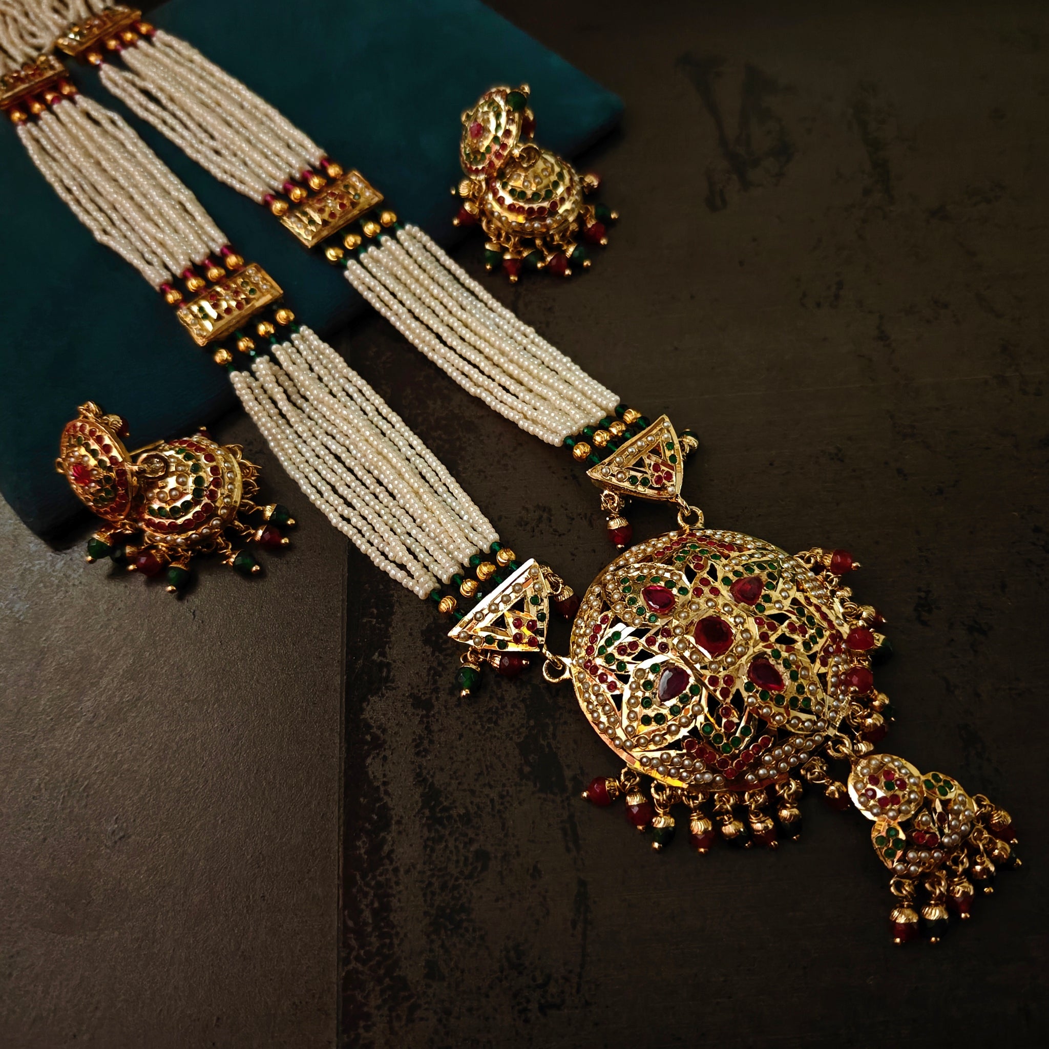 HANDCRAFTED STATEMENT JADAU NECKLACE WITH EARRINGS