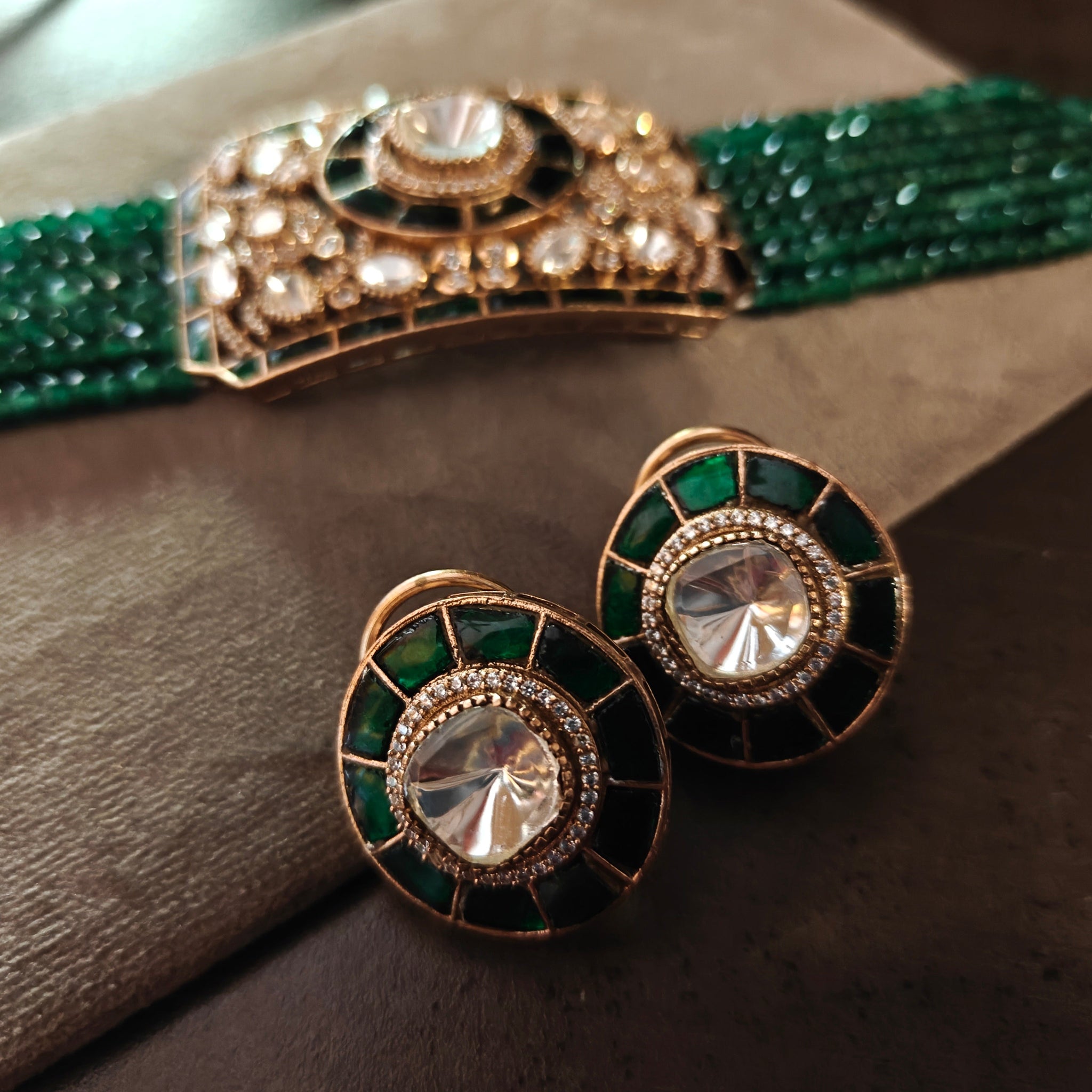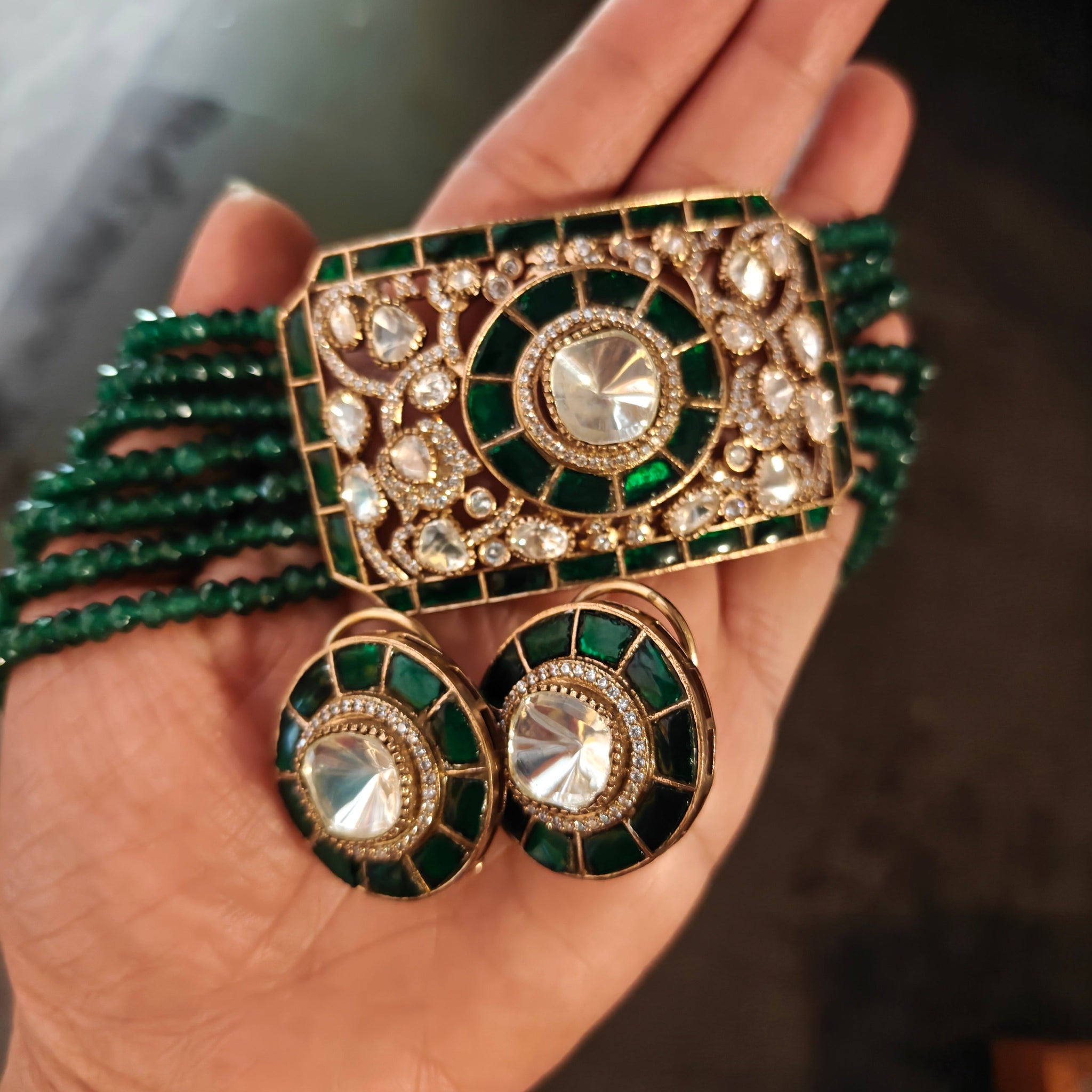 EXQUISITE MOISSANITE KUNDAN CHOKER WITH EARRINGS
