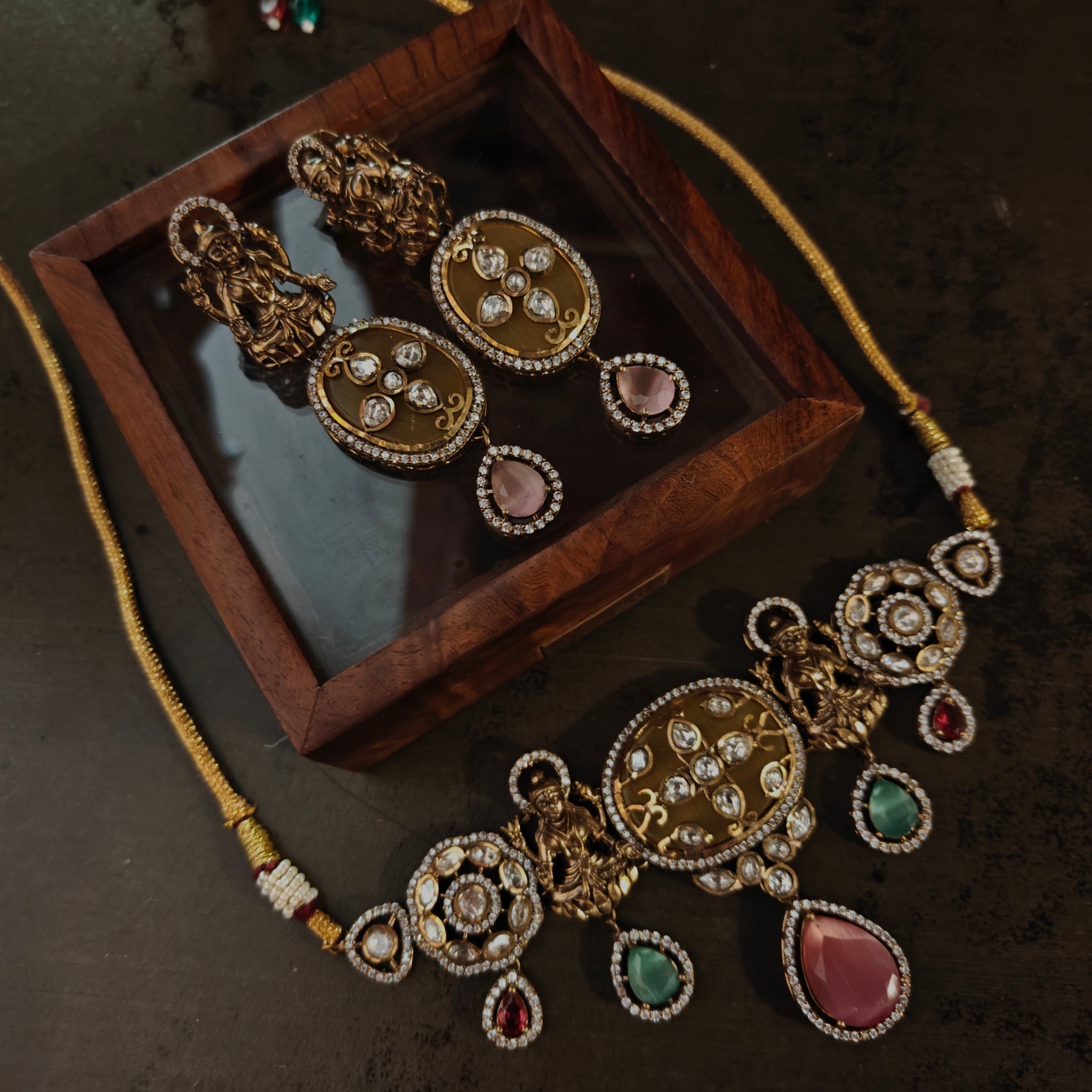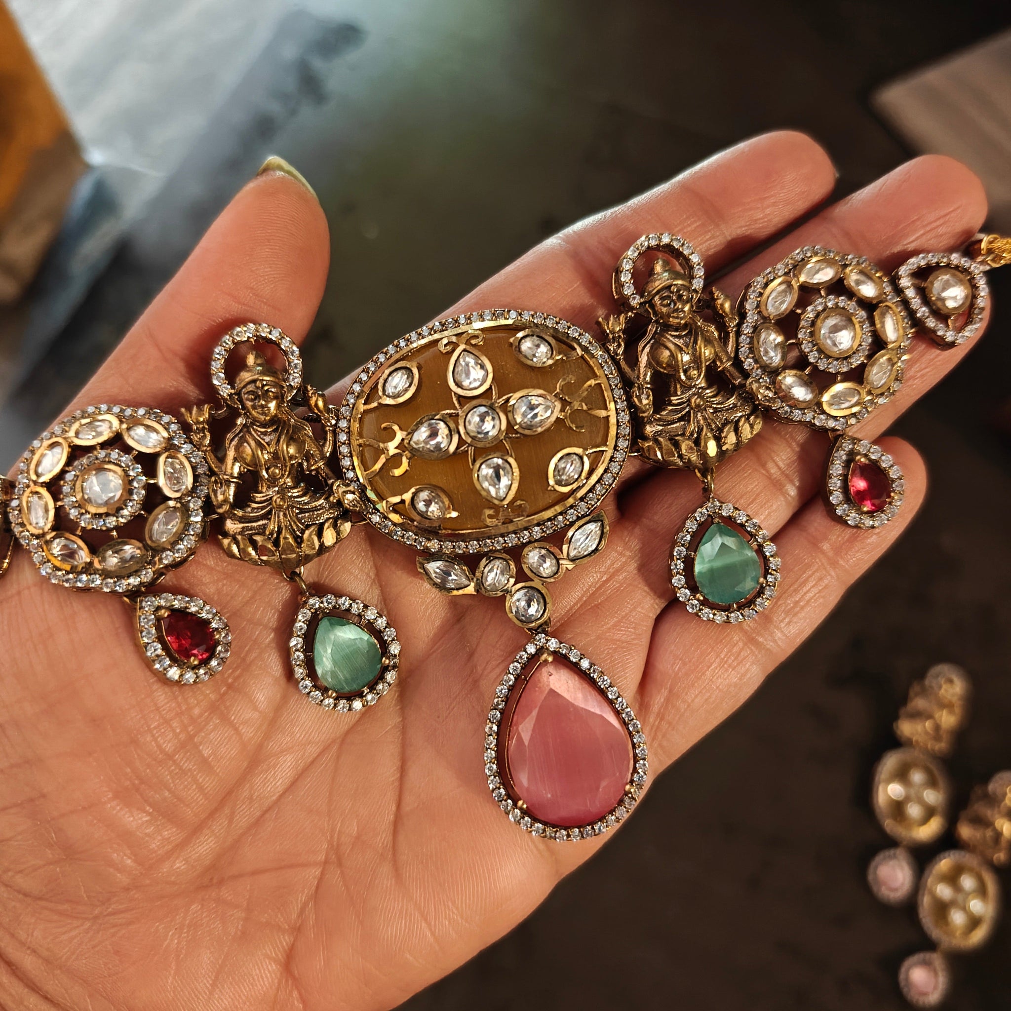 DESIGNER POLKI KUNDAN CHOKER WITH EARRINGS